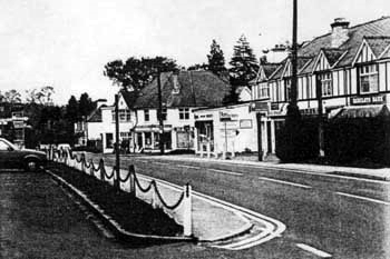 Looking from Car Park towards Station Road, showing Cross Roads with the Parade on the right & Restynge House  by the Memorial Hall and Recreation ground.